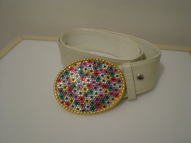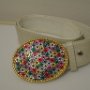 White belt with big rhinestone buckle
